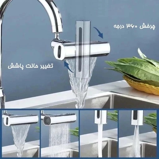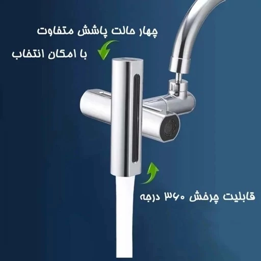 یک وسیله کاربری برای تبدیل شیرآلات به محصول چندکاره مناسب منزل و محل کار می باشد. با استفاده از این سرشیر آبشاری می توانید آب را در 4 حالت صورت فشار شکن و ملایم ، پر فشار ، آبشاری عریض و به صورت بارانی استفاده کنید. سری این سر شیر به صورت 360 درجه قابلیت چرخش دارد. اقلام همراه واشر ضد آب, آچار, تبدیل رزوه داخل به رزوه خارج, رابط اتصال با بست فلزی