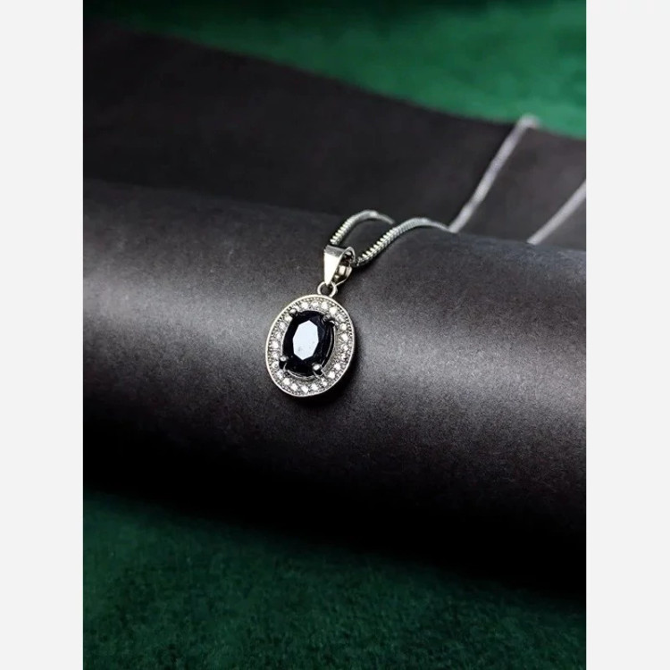 مدال نقره جواهری یاقوت کبود اصل (بدون زنجیر) زنانه